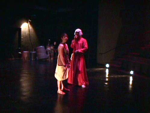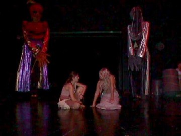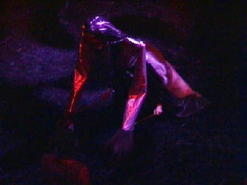 Riddley Walker was unique in the fact that it used the entire theatre space, from trap room to catwalk, as acting area. The only set was the walls of the theatre itself. The lighting was the major design element in terms of mood & atmosphere. |