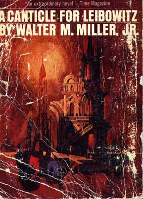 The lighting design for this production was inspired in part by another post-apocalyptic novel, A Canticle for Lebowitz, by Walter M. Miller, Jr. The cover illustrations from various editions of Lebowitz were the inspiration for the look of the Mincery (the seat of government in Riddley's world) |