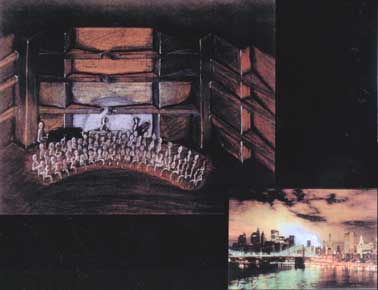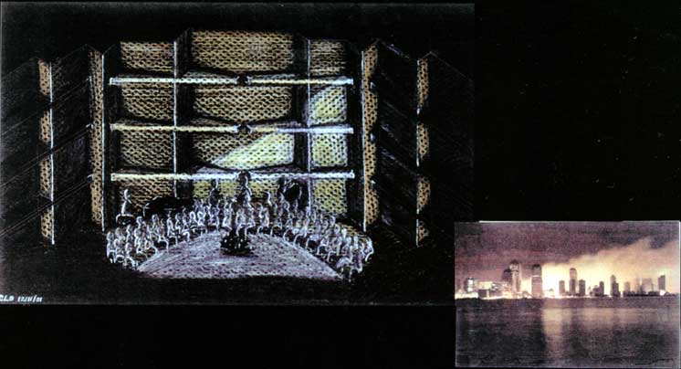 is happening in the music. The shell, on stage for acoustical reasons, becomes